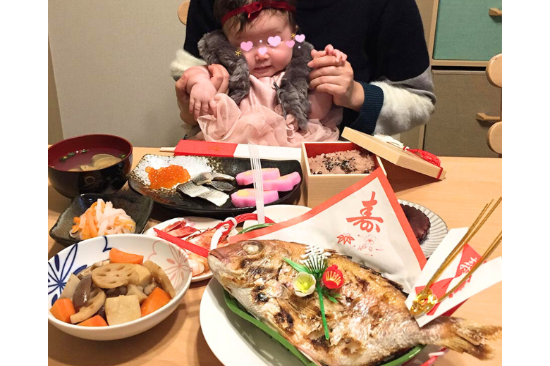 赤ちゃんは不思議そうにお膳をじーっと眺めたり、にこっと笑ったりしていて、とてもかわいかったです。